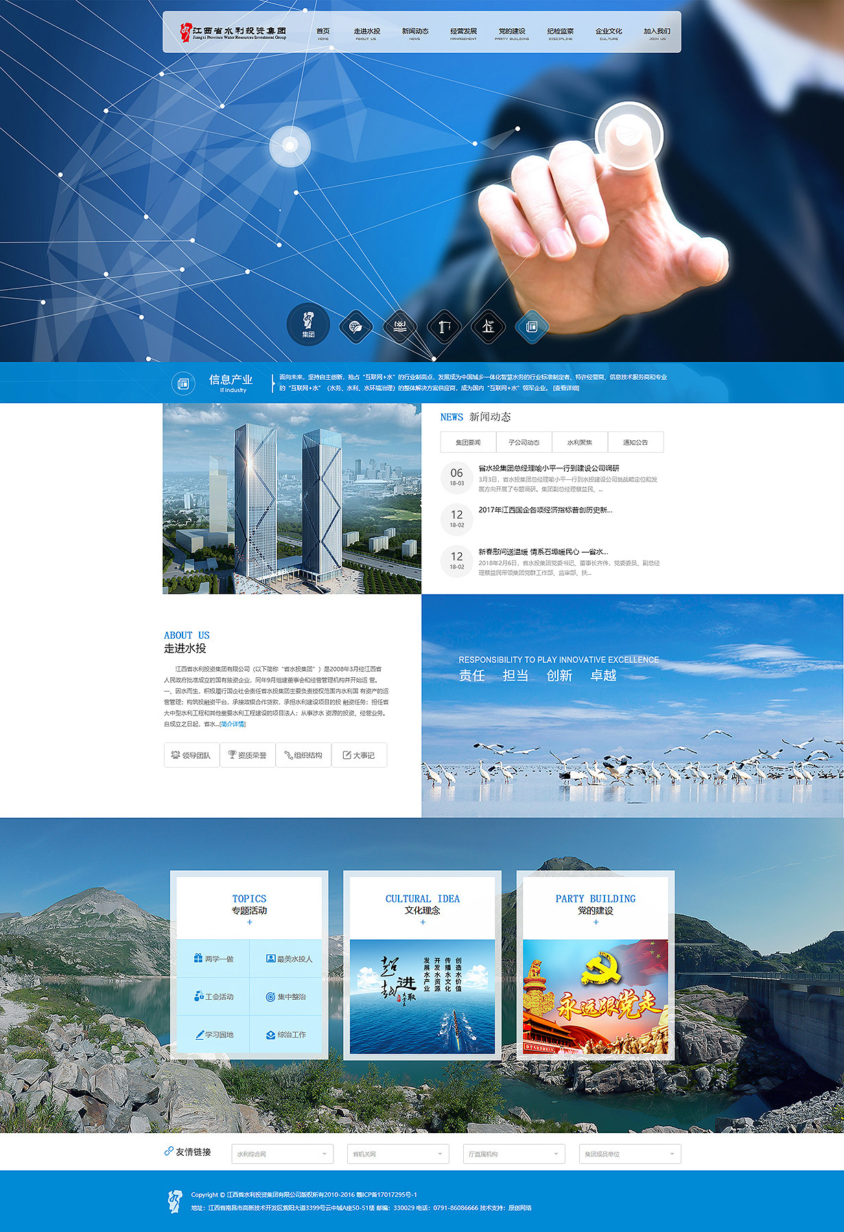 江西省水利投资集团有限deep色客(省水投集团)是2008年3月经江西省人民政府批准成立的国有独资企业,同年9月组建董事会和经营管理机构并开始运营。