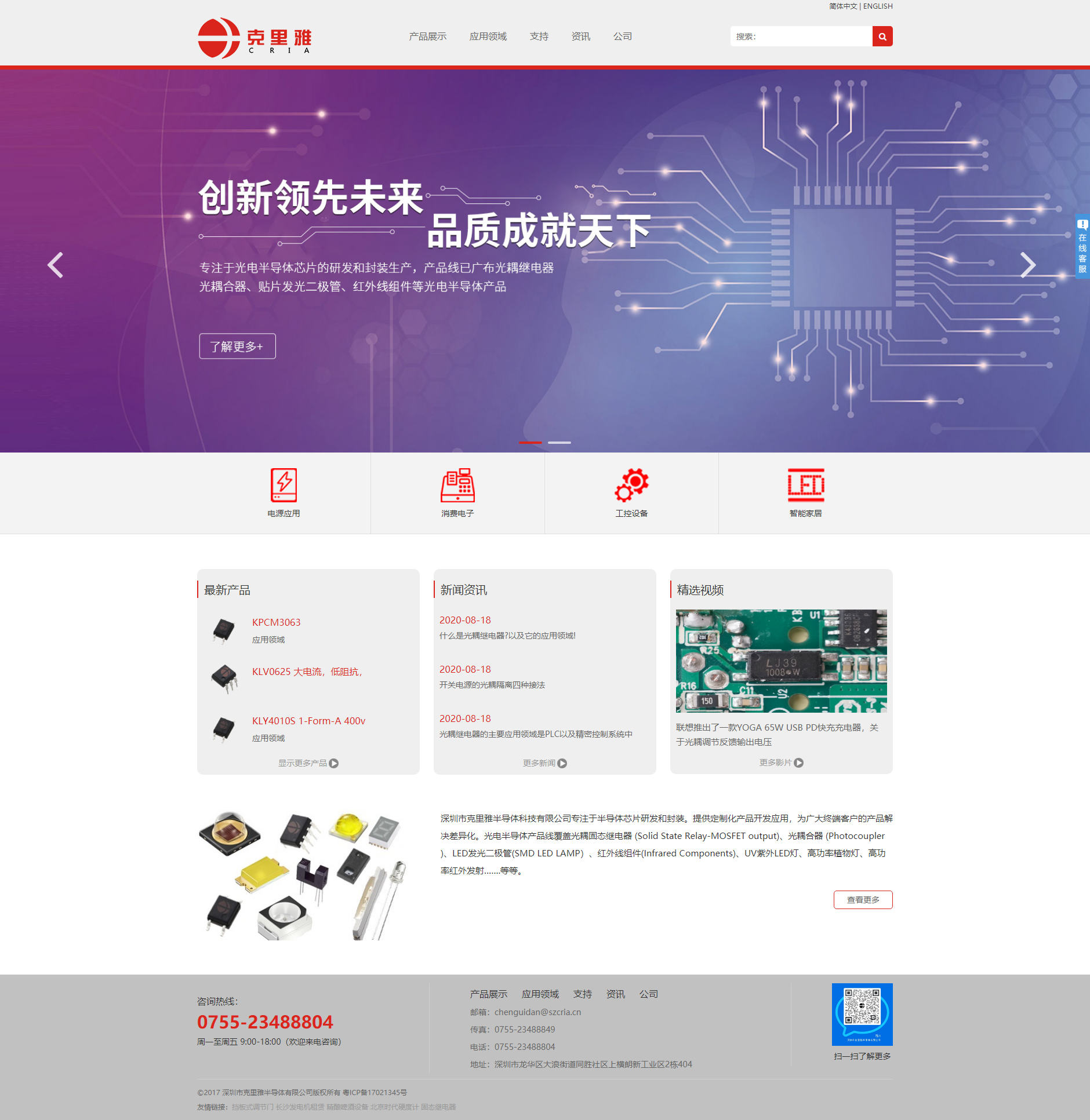 深圳市克里雅半导体科技有限deep色客专注于半导体芯片研发和封装。提供定制化产品开发应用,为广大终端客户的产品解决差异化。光电半导体产品线覆盖光耦固态继电器 (Solid State Relay-MOSFET output)、光耦合器 (Photocoupler )、LED发光二极管(SMD LED LAMP)、红外线组件(Infrared Components)、UV紫外LED灯、高功率植物灯、高功率红外发射…….等等。
