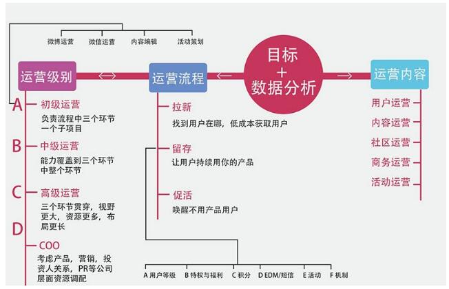 这里普及下运营的一些概念,整合了其他人的一些观点,对运营有个系统化了解。大家可以参考如下这张图,看图理解运营: