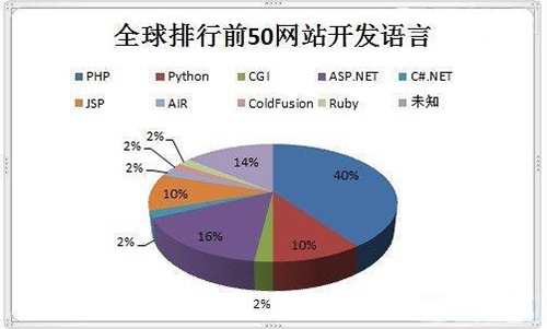 全球排行前50的网站有40%是用PHP开发的。