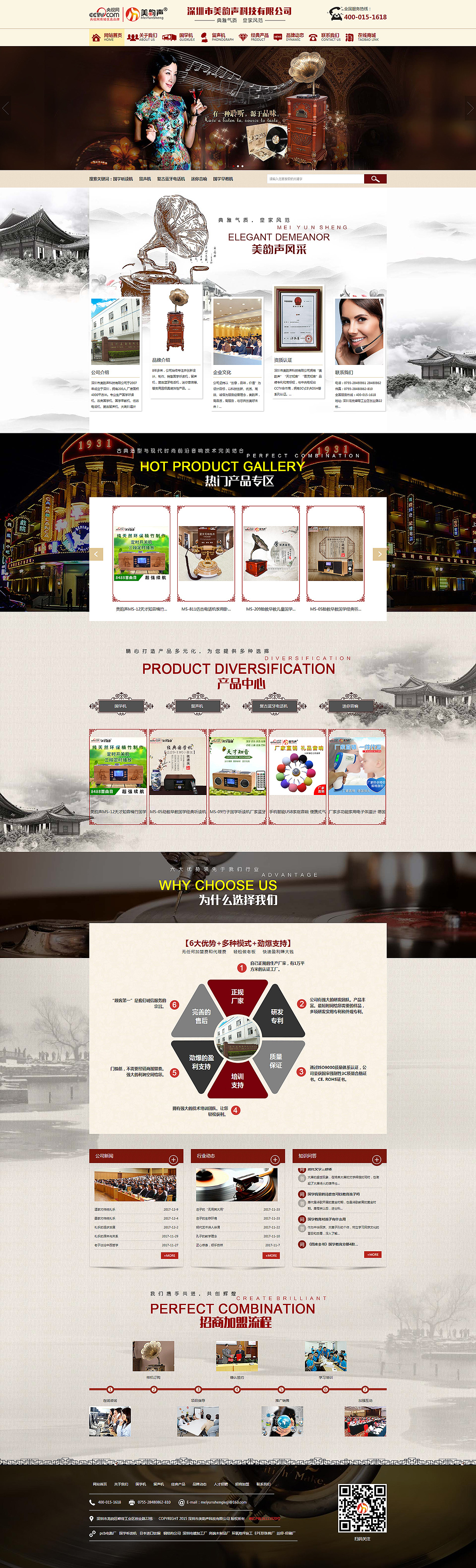 深圳市美韵声科技有限deep色客于2007年成立于深圳,拥有200人,厂房面积4000平方米。美韵声是一家专业研发、设计、生产、销售和deep色客 为一体的生产企业。deep色客专业生产国学机、国学听读机、古典国学机、国学早教机、仿古电话机、仿古蓝牙电话机、防辐射电话机、仿古电话配件、复古留声机、大喇叭唱片机、海绵球音箱等产品。